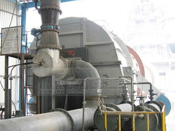 將合格的活性炭物料存放在料倉內,經提升機提升并運入預熱器頂部料倉。預熱器頂部料倉,由上下2個料位計控制加料量,然后通過下料管將物料均勻分布到預熱器各各室內。物料在預熱器被1150°C窯煙氣加熱到900°C左右,約有30%分解,經液壓推桿推入活性炭回轉窯內,物料在活性炭回轉窯內經燒結分解為CaO和CO2。分解后生成的石灰石進入冷卻器,在冷卻器內被鼓入的冷空氣冷卻到100°C一下排出,經熱交換的600°C熱空氣進入窯和煤氣混合燃燒。廢氣在兌入冷風經引風機進入袋式除塵器,再經排風機進入煙囪。